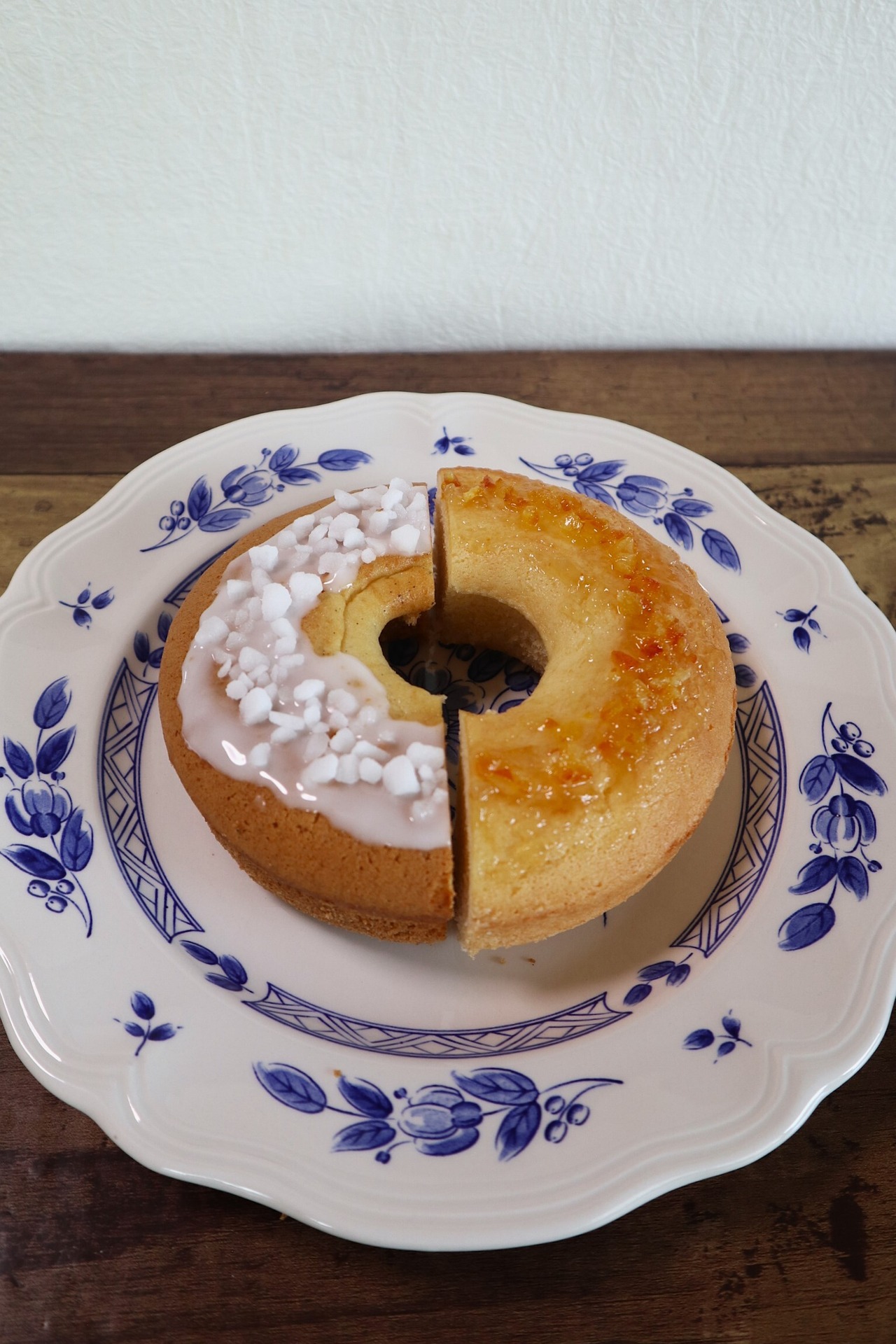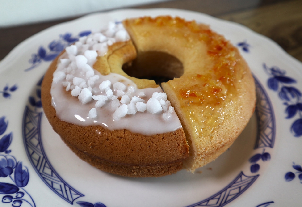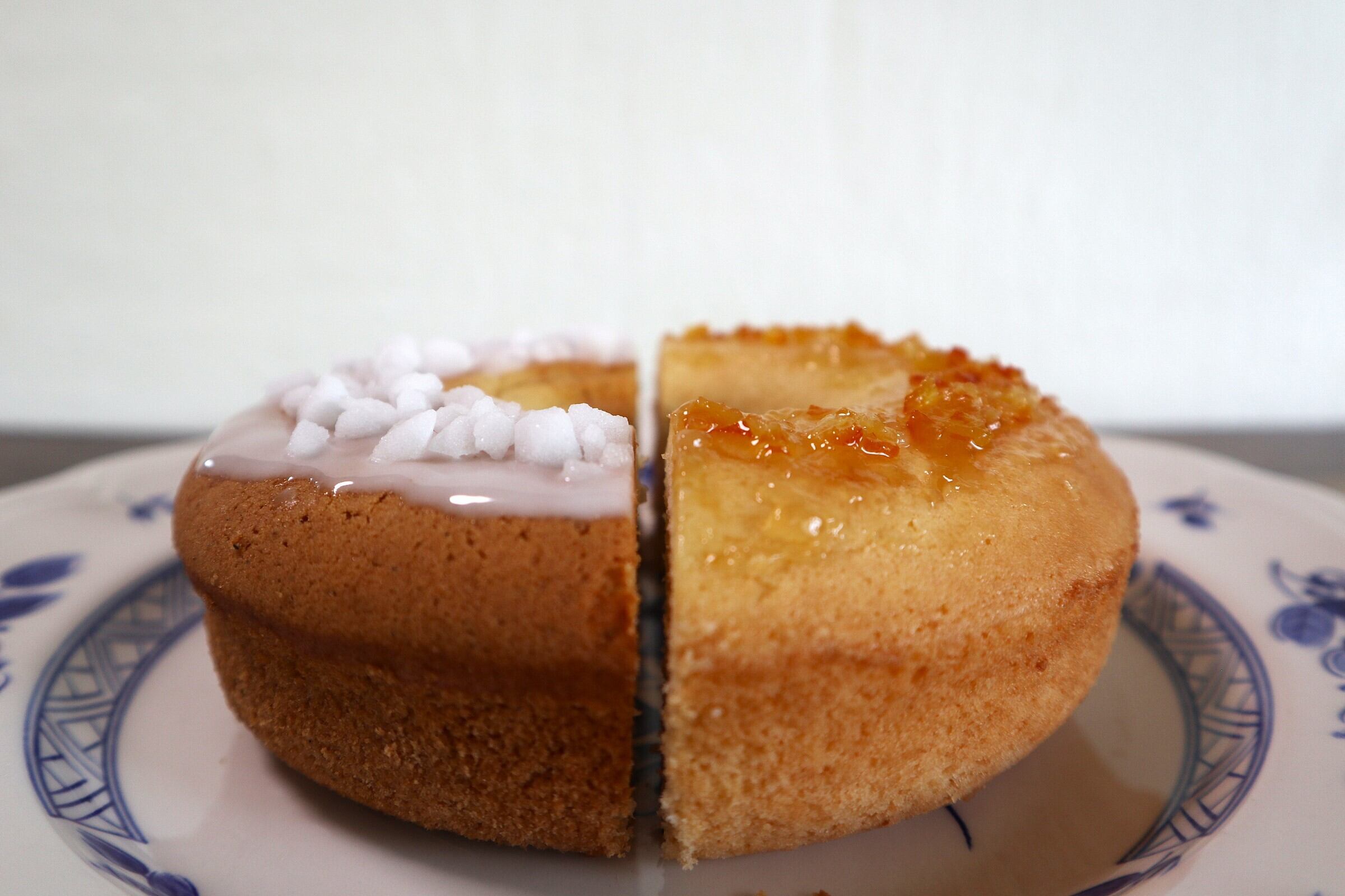 粉、卵、砂糖で作られ、独特のリングの形をした柔らかいケーキ、クラッシックバージョンとレモンとオレンジの香るバージョン!