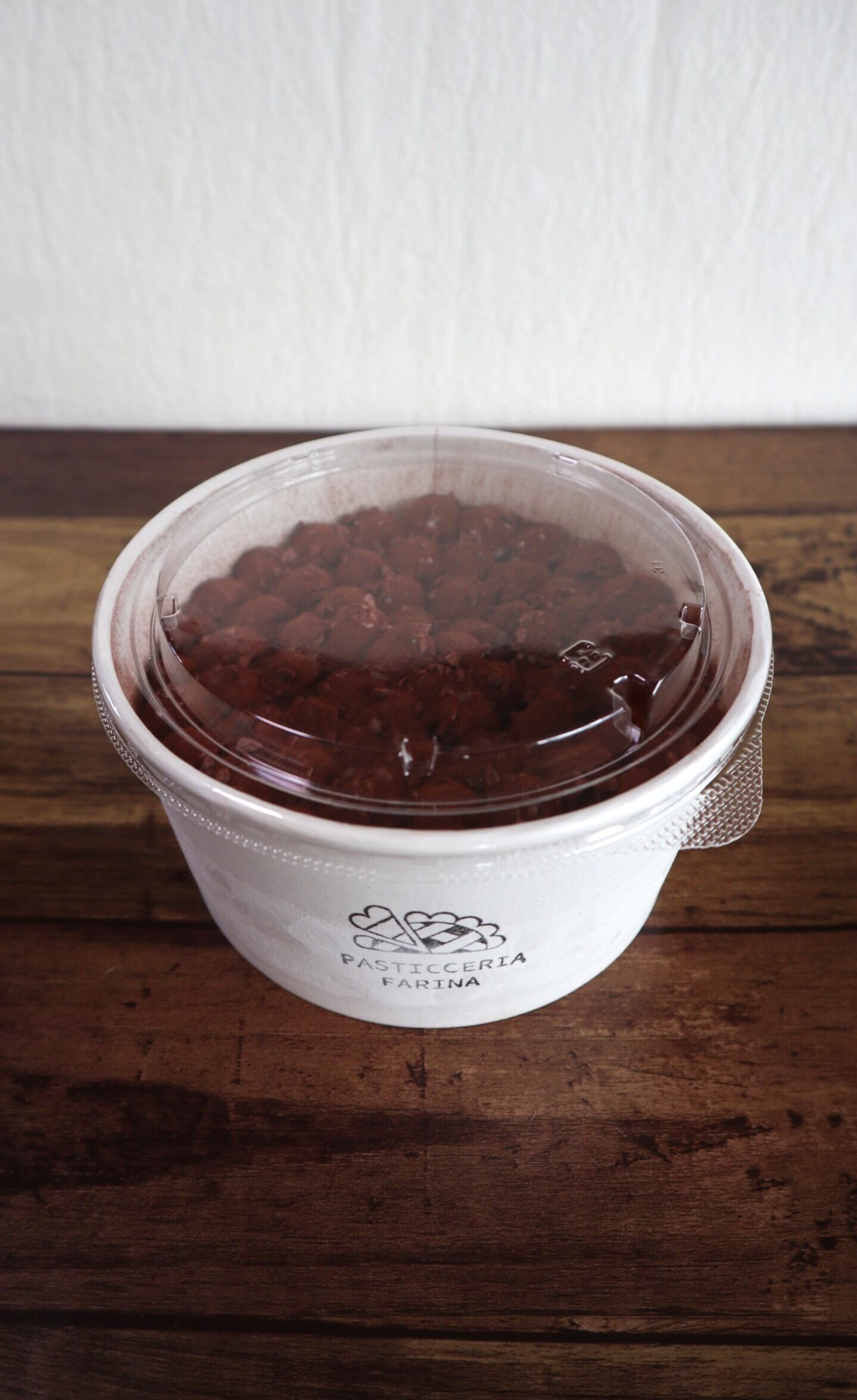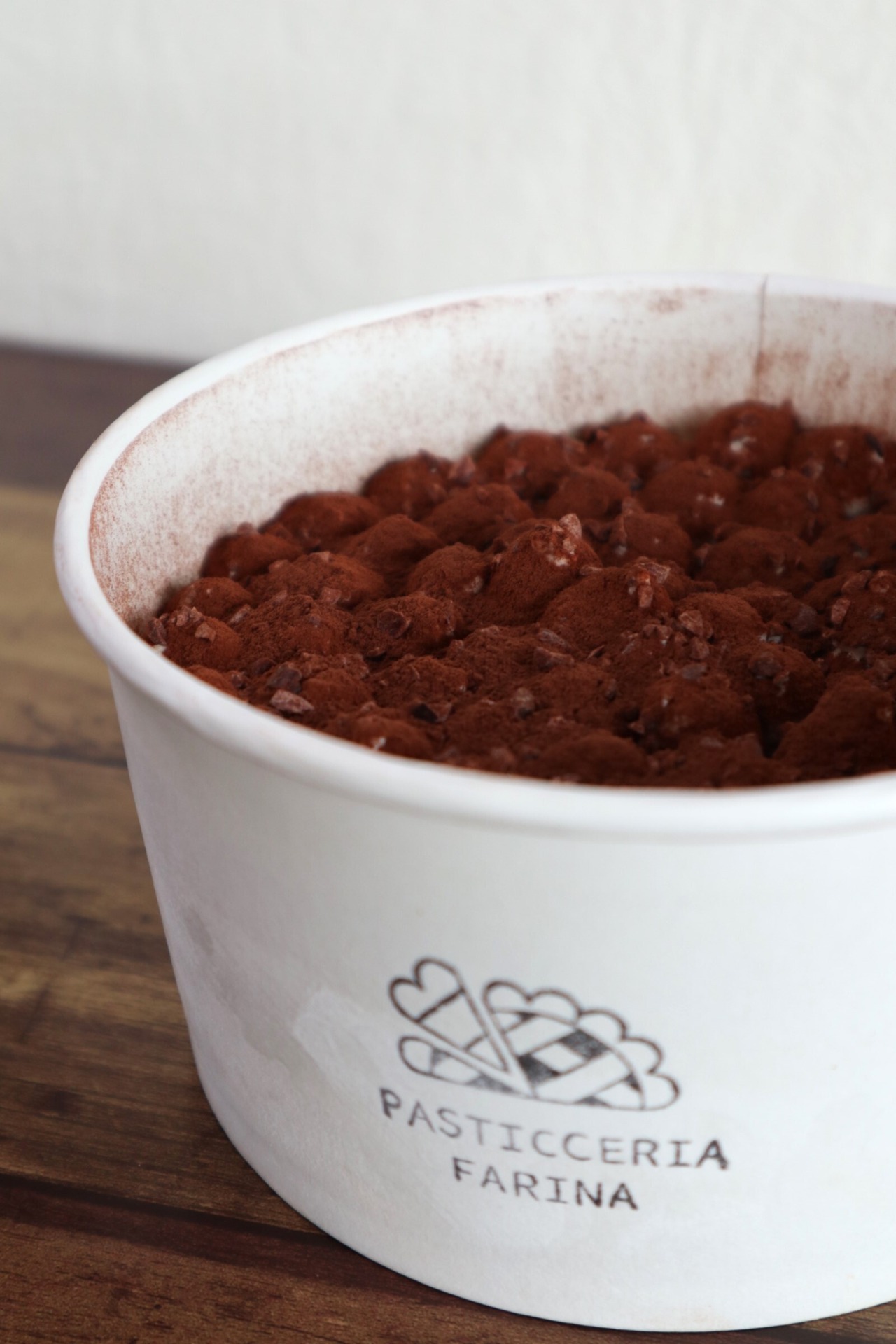 コーヒー、マルサラ酒とラム酒に浸したレディフィンガークッキー生地となめらかな100%イタリア産マスカルポーネチーズクリームを交互に重ねて層を作り、表面にココアパウダーをふりかけた大人向けのスイーツです。
